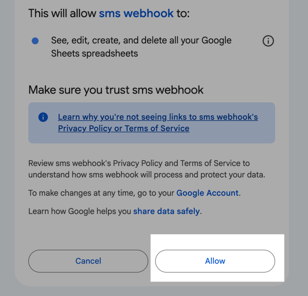 Now, every incoming SMS on your phone will be automatically sent to your Google Sheet.